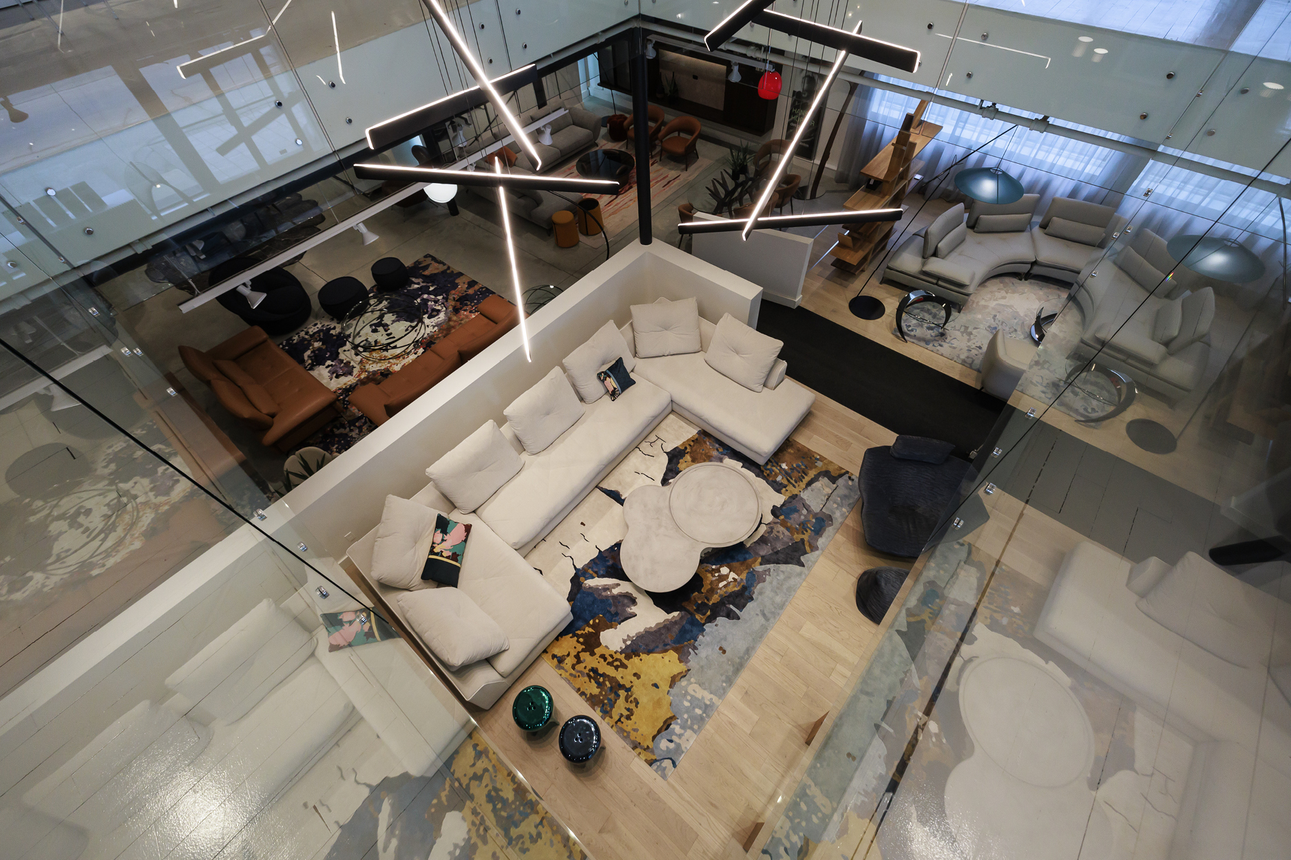 Au total, plus de 1 500 articles haut de gamme à la signature unique sont exposés sur deux paliers au sein d’un immeuble dont la sobriété architecturale et le look industriel mettent encore plus en valeur le modernisme des collections.