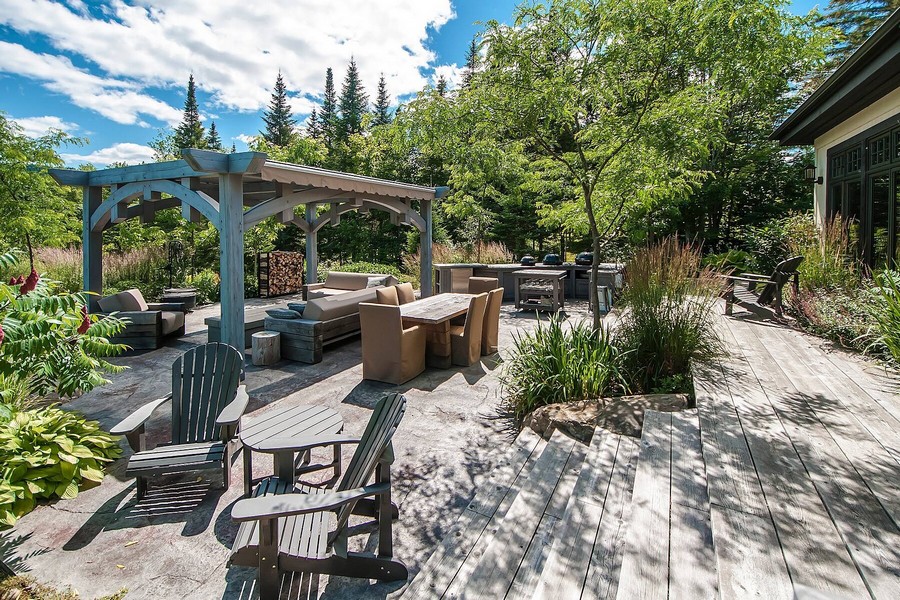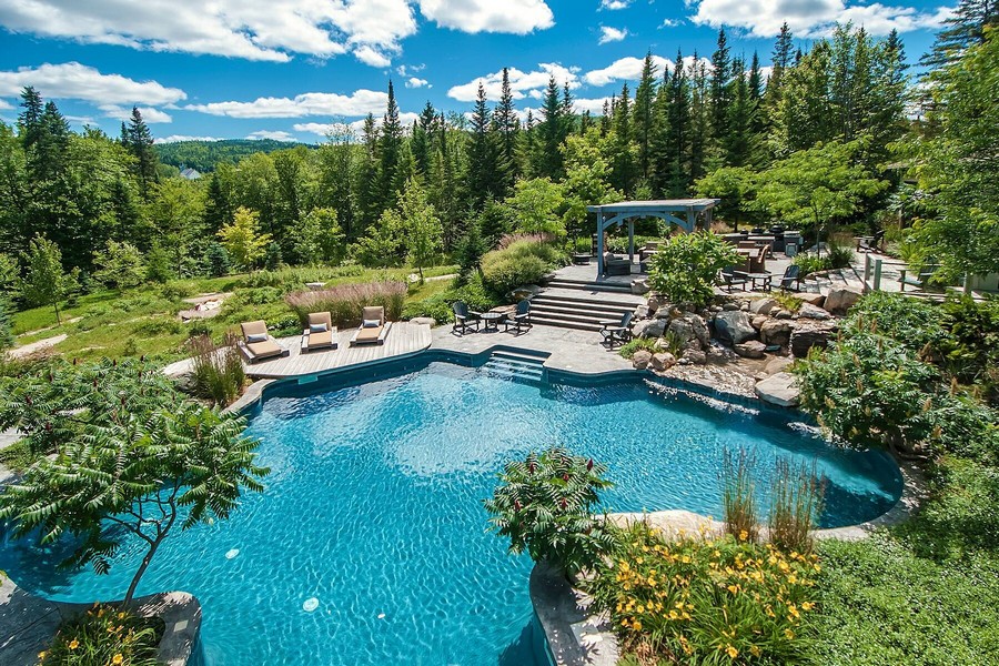 Et que dire de son aménagement paysager et de son immense piscine creusée bordée de magnifiques terrasses en béton estampé et de jardins surélevés ! Cet espace de vie, qui regorge aussi d’arbres fruitiers, est littéralement à couper le souffle !