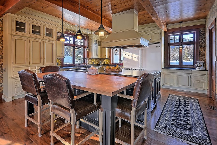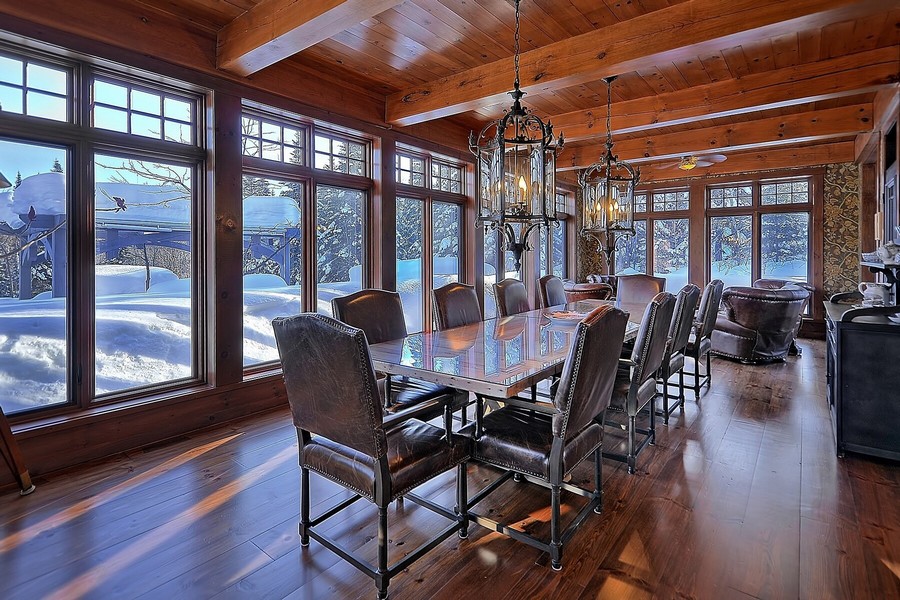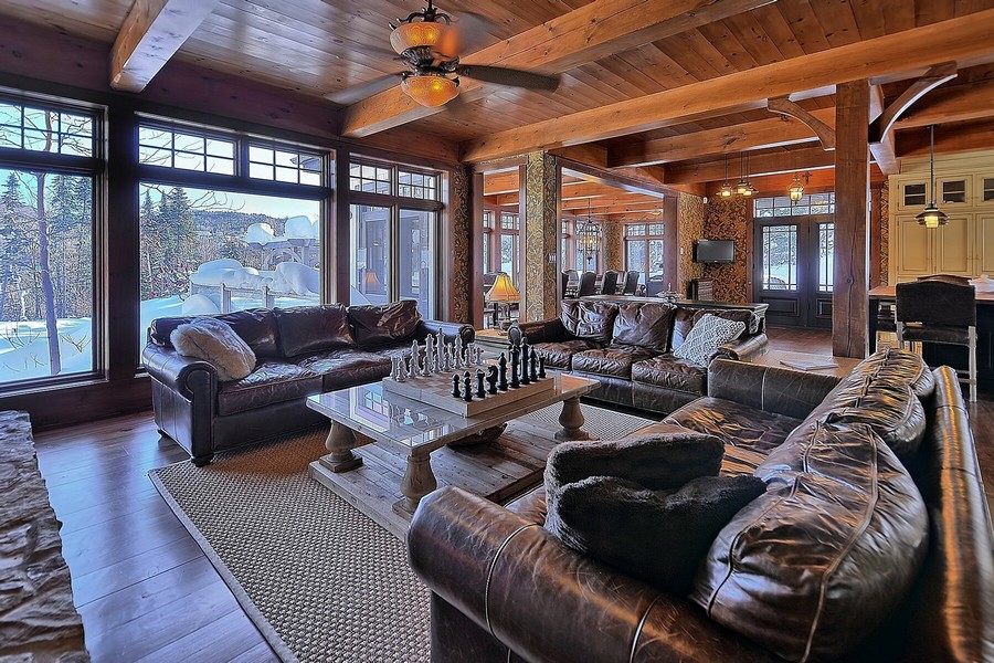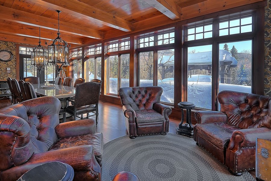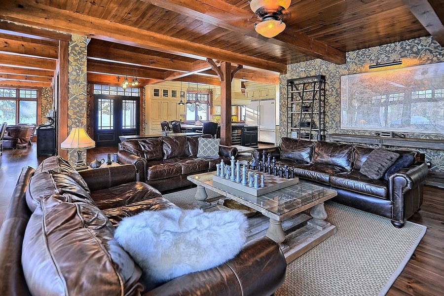 À l’instar de l’aménagement extérieur, le design intérieur, à la fois riche et sobre, est tout aussi époustouflant ! Le bois, la pierre et les somptueuses tapisseries procurent une chaleur indéniable à cette demeure, qui possède également une fenestration abondante permettant d’admirer le paysage extérieur, quel que soit l’endroit où l’on se trouve.