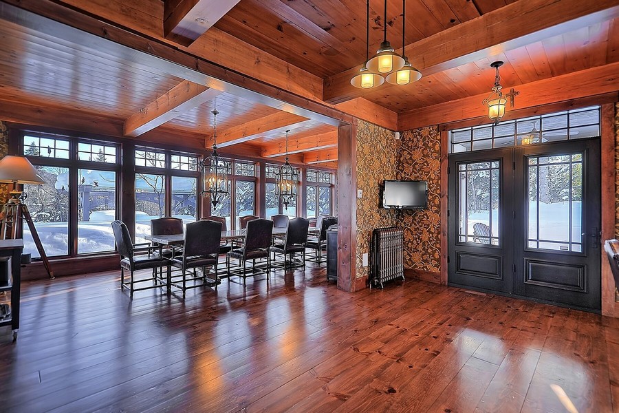 La résidence possède 3 chambres, 3 salles de bain luxueuses, un bureau, une salle d’entraînement ainsi qu’un cinéma maison. Détail intéressant : le domaine est très autonome sur le plan énergétique. En plus de la géothermie et de la génératrice, une fournaise extérieure au bois permet de chauffer la piscine et la propriété située à seulement 30 kilomètres au nord de la capitale nationale et à 10 minutes du village de Stoneham. Un trajet qui vaut son pesant d’or !