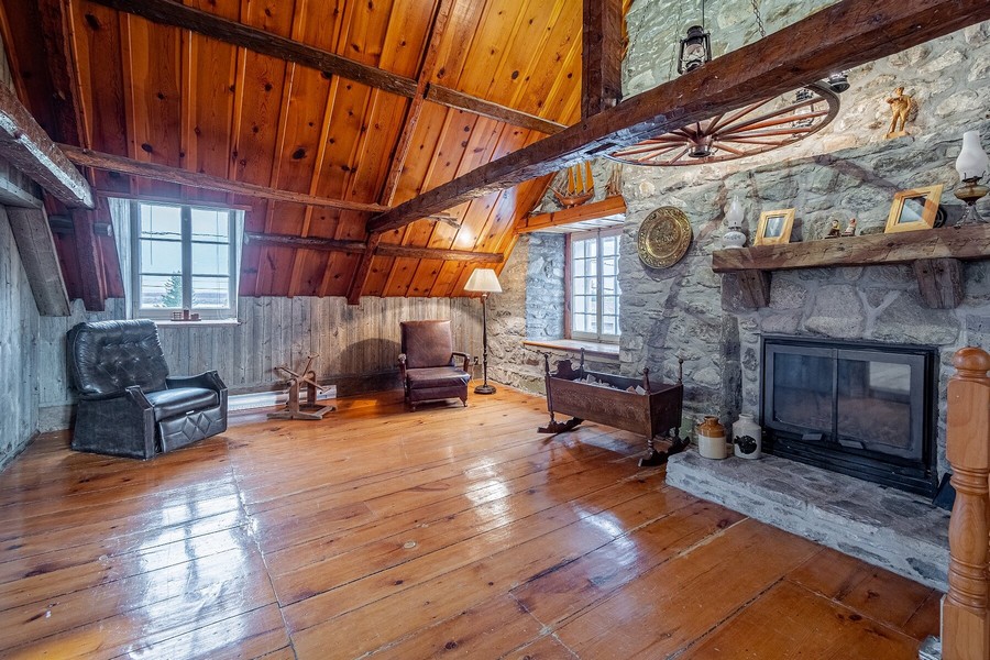 Ses murs de pierre d’esprit français et sa toiture en tôle rappellent son époque. Jadis, les descendants de l’un des fondateurs de cette municipalité ont logé dans cette maison qui possède trois chambres, dont une immense chambre principale à l’étage avec salle de bain attenante, de magnifiques foyers en pierre, un solarium et un garage double. En prime, un immense terrain de 34 000 pi2 et une vue sur le fleuve.