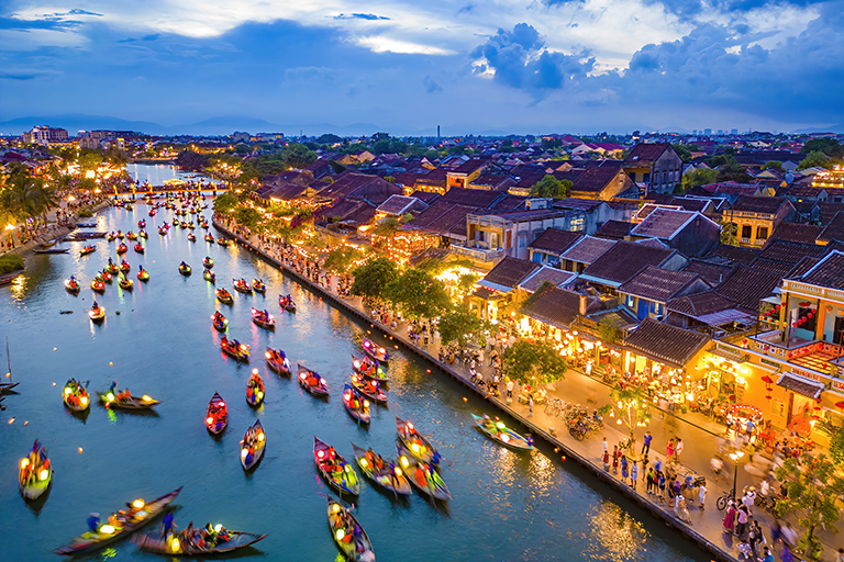 Pour en saisir toute la magie, rien de mieux qu’un souper-croisière sur La Perle de l’Orient, une élégante jonque de bois à trois ponts, au charme d’antan. À la nuit tombée, Saïgon s’illumine : les silhouettes modernes de la Bitexco Tower et du Landmark 81 dessinent un horizon futuriste, rehaussé de couleurs vibrantes qui se reflètent dans la rivière. Depuis le pont du bateau, la ville dévoile un visage à la fois grandiose, poétique et profondément vivant. C’est une façon unique et inoubliable de découvrir Saïgon.