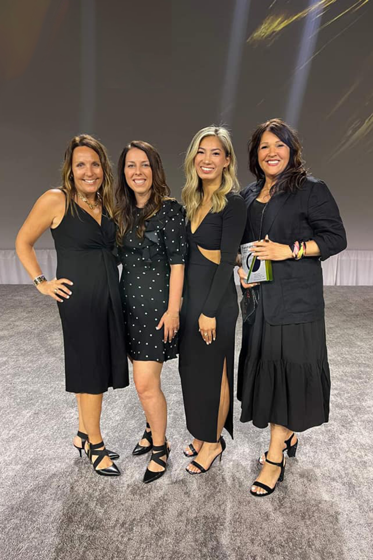 Sur la photo, lors des {Transitions Academy Awards } : Mélanie Séguin d’Essilor Canada, en compagnie de Martine Girard, May Ann Giguère et Marie Trudel, opticiennes d’ordonnances de MAVUE Marie Trudel.