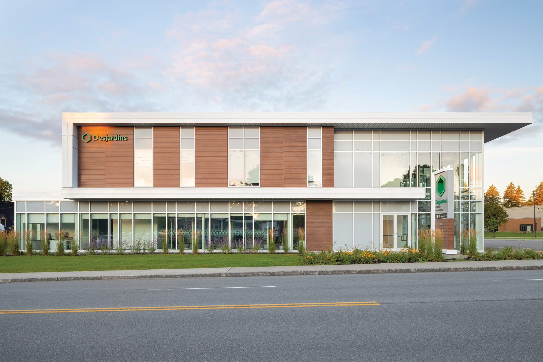 Selon DG3A Architecture, faire des choix judicieux de matériaux de qualité et porter une attention particulière à la conception des détails de construction contribuent grandement à assurer cette pérennité des bâtiments. Sur la photo : la caisse Desjardins d’Orsainville. © Diane Blanchard