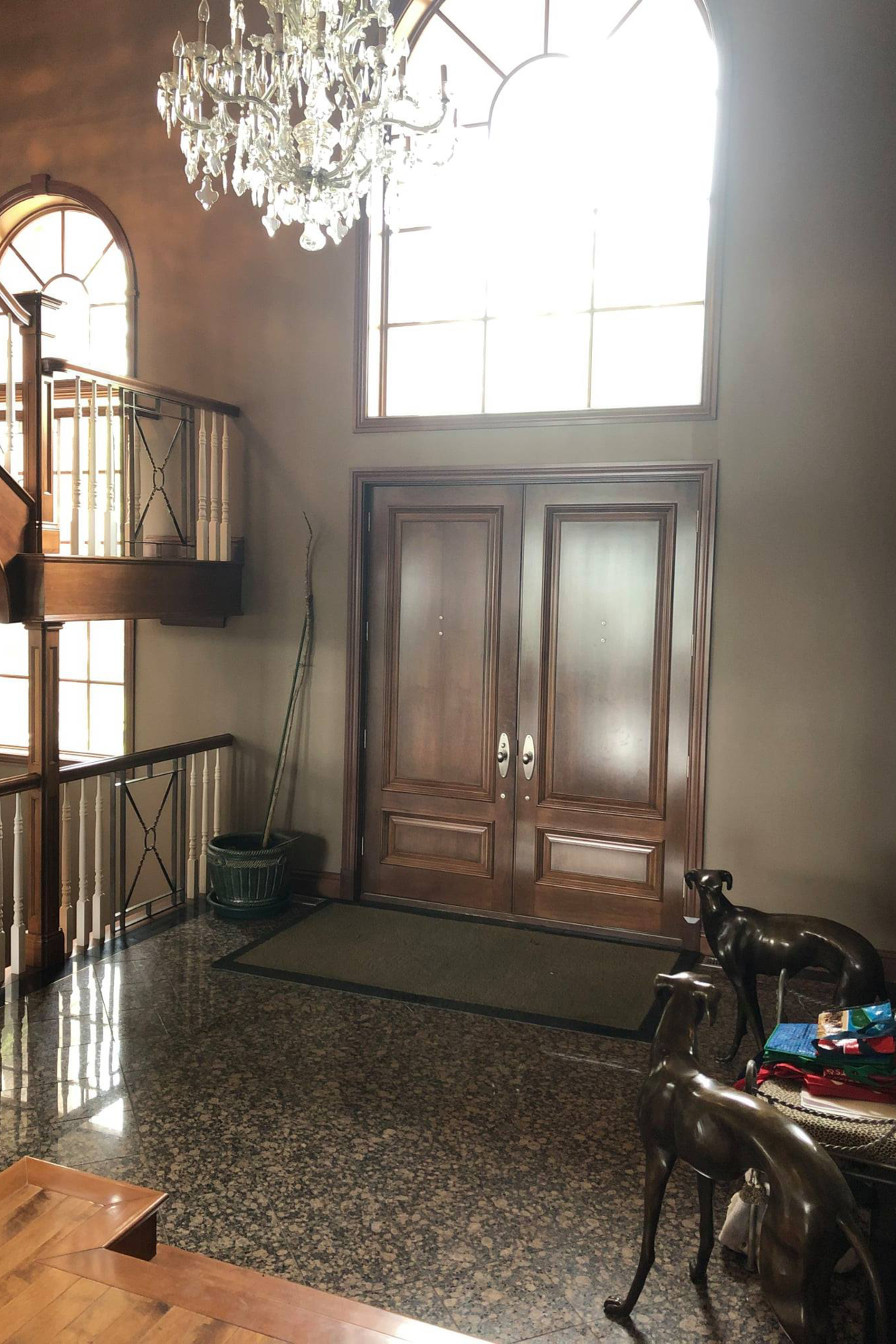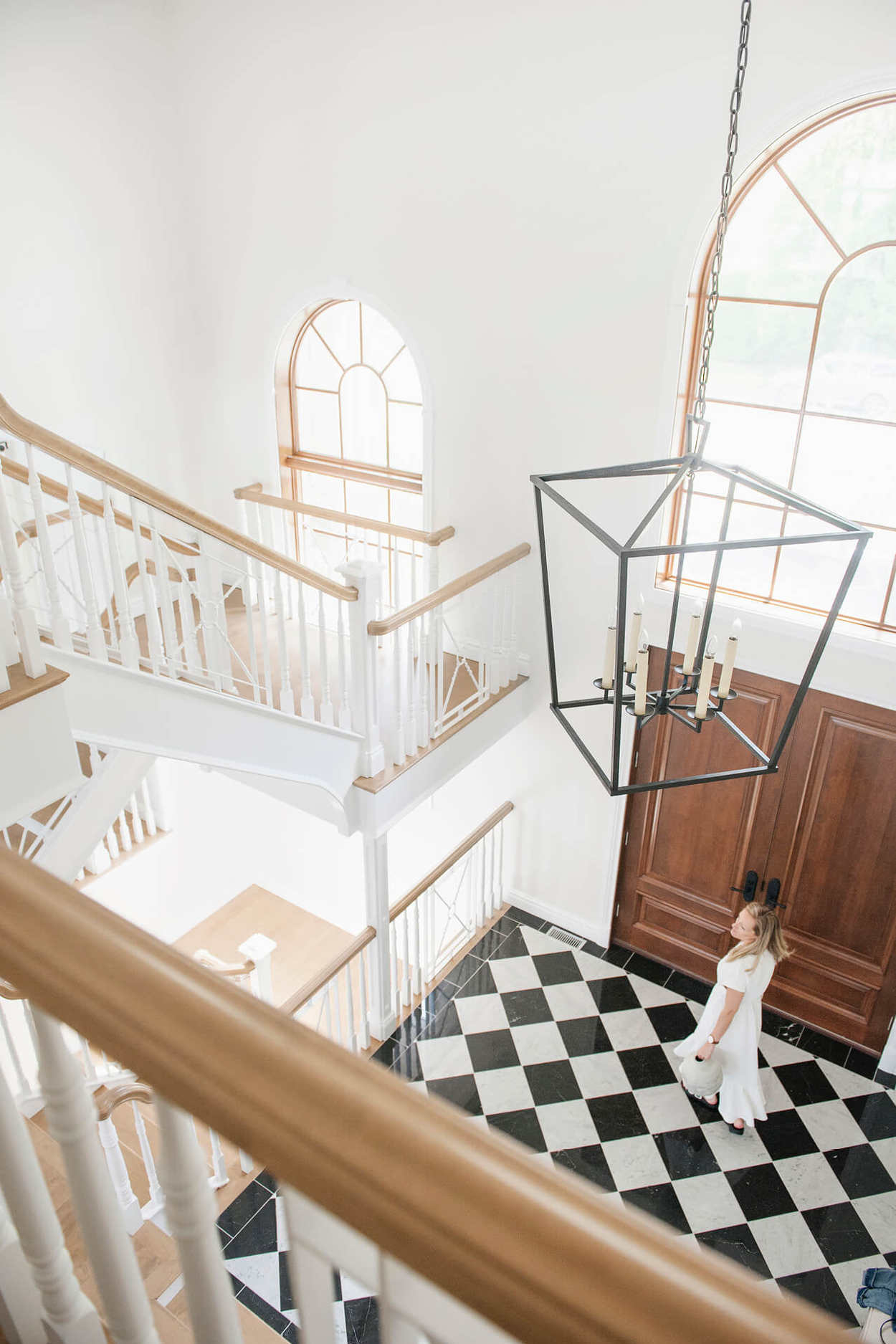 APRÈS – Sous le charme de ce vestibule complètement transformé, avec ses carreaux de marbre noir et blanc en damier. Un choix classique et intemporel qui a su actualiser l’entrée de cette résidence et qui traversera les années en beauté.