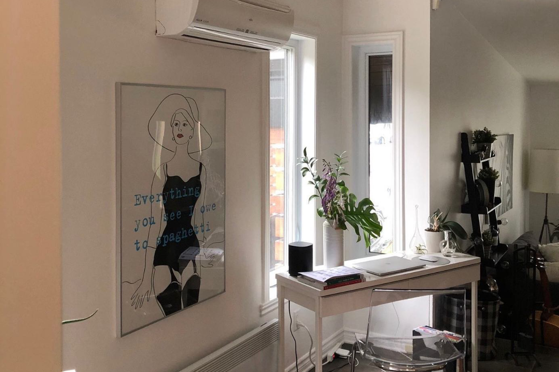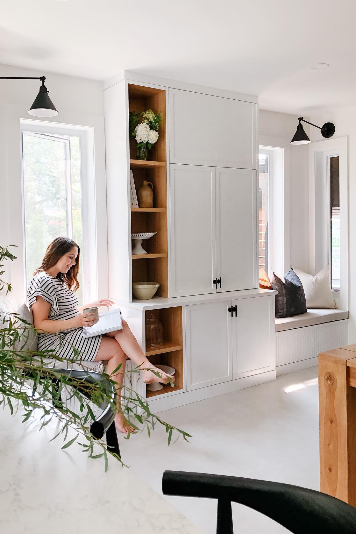 APRÈS – La banquette du projet « Le Bernard » se voulait une zone de rangement complémentaire à la cuisine tout en ayant comme objectif de camoufler le climatiseur mural lorsqu’il n’est en pas en fonction. (Source : Cab & Co. Architecture intérieur)