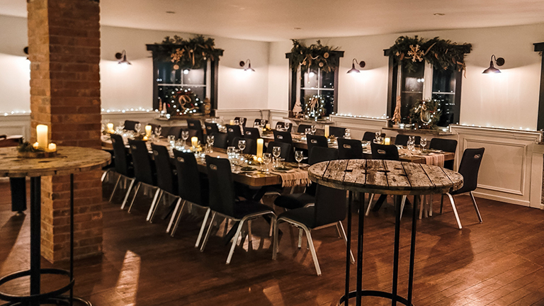 La grande salle du rez-de-chaussée peut accueillir des groupes à partir de 50 personnes. D’un côté, un espace détente avec foyer de masse central et piano, de l’autre, un coin ludique avec table de billard et de babyfoot, sans oublier le grand bar en bois massif où l’on propose, entre autres consommations, des bières locales, des cocktails signature ainsi que des vins bios. « Et cette salle se prête aussi bien à un contexte professionnel en cocktail dinatoire qu’à un rassemblement familial, assis en formule à l’assiette ! », lance la dynamique directrice générale de La Cité Agricole, Karine Lafrenière.