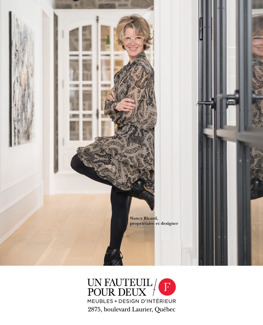 Récemment, Un Fauteuil Pour Deux a travaillé à l’ameublement et à la décoration d’une maison unifamiliale située à Blainville. Le défi imposé par ce mandat était de concilier les goûts des deux propriétaires en matière de styles, soit le classique pour l’un et le contemporain pour l’autre. Ce travail a été réalisé à partir des plans d’Evolution Architecture et du travail des designers d’intérieur Johanie Gariépy et Joannie Fortier de Symbiose Design – Atelier de création. Grâce à cette collaboration, le résultat final est spectaculaire et la propriété de style farmhouse classique se démarque par son élégance et sa prestance.